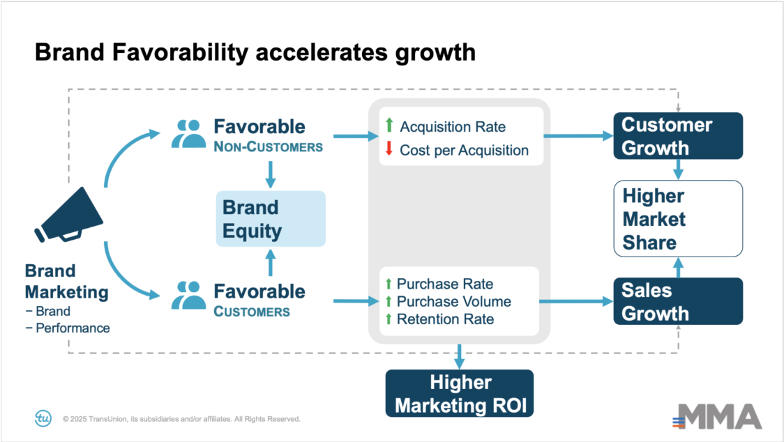 - Brand drives acquisition efficiency. Favorability is not a vanity metric; it’s a predictor of conversion.