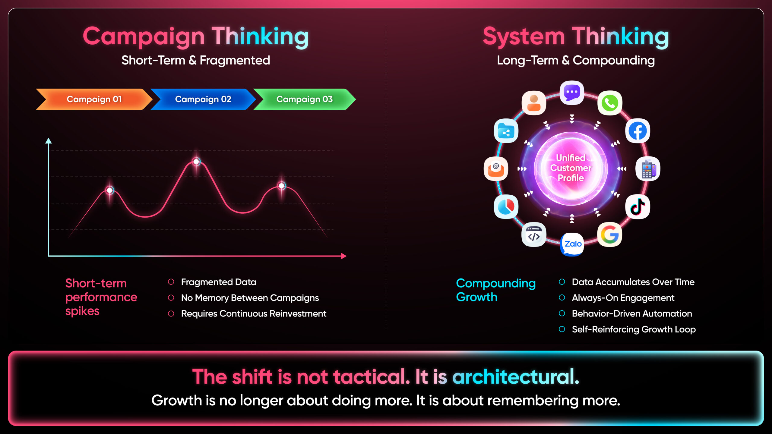 First, growth is no longer constrained by the efficiency of individual campaigns, but by the design of the underlying system. Organizations that rely solely on campaign optimization may achieve short-term gains, but will struggle to build sustainable advantages.