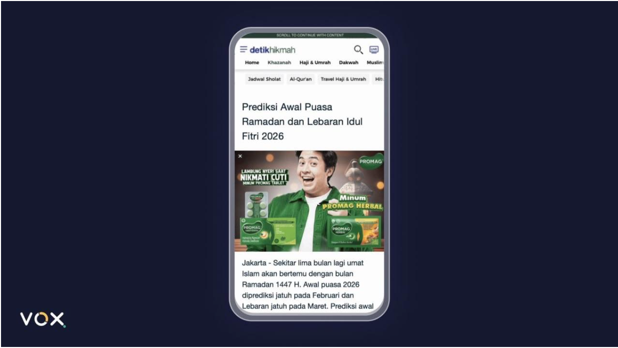 Leverage VOX Ramadan integration to align your ads with key daily windows — early morning, pre-iftar, and post-iftar. By showing relevant, timely content during these moments, your creatives reach users when they are most attentive and receptive, increasing engagement and ensuring your brand stays top of mind throughout the day.
